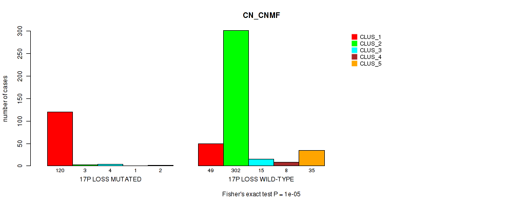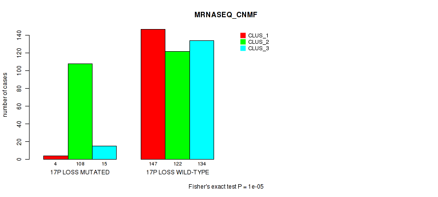 17p loss cnv correlated to 'MRNA_CHIERARCHICAL', 'CN_CNMF', 'METHLYATION_CNMF', 'MRNASEQ_CNMF', 'MRNASEQ_CHIERARCHICAL', 'MIRSEQ_CNMF', 'MIRSEQ_CHIERARCHICAL', 'MIRSEQ_MATURE_CNMF', and 'MIRSEQ_MATURE_CHIERARCHICAL'.