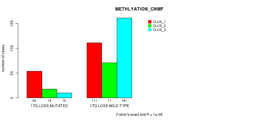 17q loss cnv correlated to 'MRNA_CHIERARCHICAL', 'CN_CNMF', 'METHLYATION_CNMF', 'MRNASEQ_CNMF', 'MRNASEQ_CHIERARCHICAL', 'MIRSEQ_CNMF', 'MIRSEQ_CHIERARCHICAL', and 'MIRSEQ_MATURE_CHIERARCHICAL'.