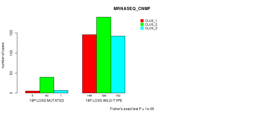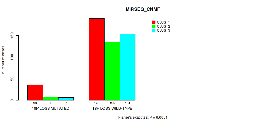 18p loss cnv correlated to 'CN_CNMF', 'METHLYATION_CNMF', 'MRNASEQ_CNMF', 'MIRSEQ_CNMF', and 'MIRSEQ_CHIERARCHICAL'.