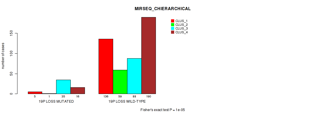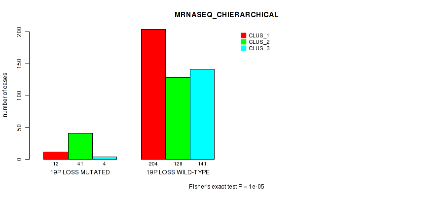 19p loss cnv correlated to 'CN_CNMF', 'METHLYATION_CNMF', 'MRNASEQ_CNMF', 'MRNASEQ_CHIERARCHICAL', 'MIRSEQ_CNMF', 'MIRSEQ_CHIERARCHICAL', and 'MIRSEQ_MATURE_CHIERARCHICAL'.