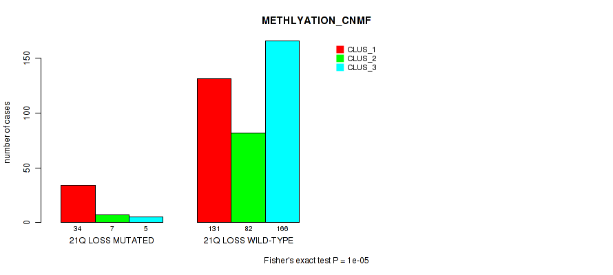 Figure S394. Get High-res Image Gene #78: '21q loss' versus Molecular Subtype #4: 'METHLYATION_CNMF'