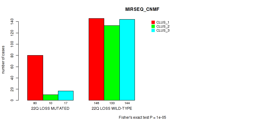 Figure S404. Get High-res Image Gene #79: '22q loss' versus Molecular Subtype #9: 'MIRSEQ_CNMF'