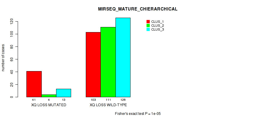 Figure S413. Get High-res Image Gene #80: 'xq loss' versus Molecular Subtype #10: 'MIRSEQ_CHIERARCHICAL'
