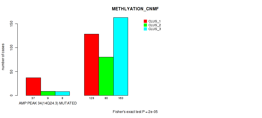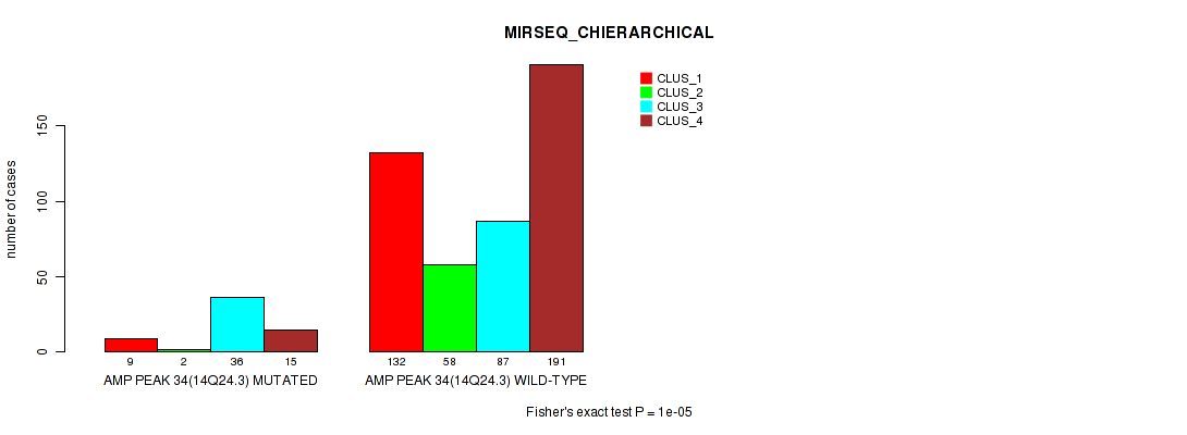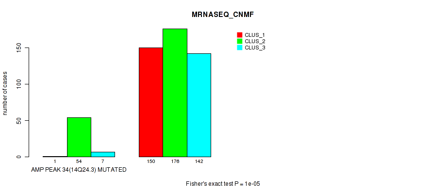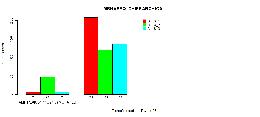 amp_14q24.3 cnv correlated to 'CN_CNMF', 'METHLYATION_CNMF', 'MRNASEQ_CNMF', 'MRNASEQ_CHIERARCHICAL', 'MIRSEQ_CNMF', and 'MIRSEQ_CHIERARCHICAL'.