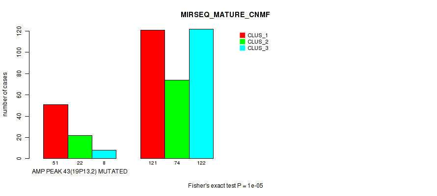 del_19q13.43 cnv correlated to 'MRNA_CHIERARCHICAL', 'CN_CNMF', 'METHLYATION_CNMF', 'MRNASEQ_CNMF', 'MRNASEQ_CHIERARCHICAL', 'MIRSEQ_CNMF', 'MIRSEQ_CHIERARCHICAL', and 'MIRSEQ_MATURE_CHIERARCHICAL'.