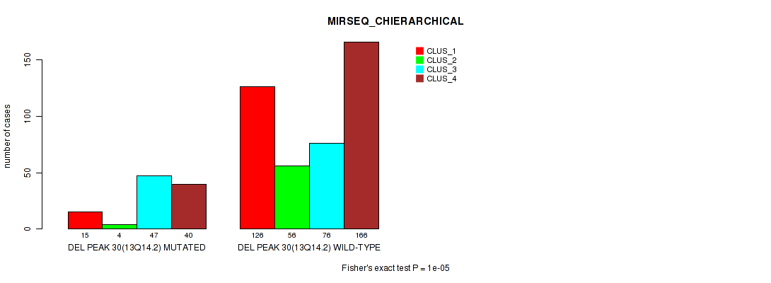 del_13q14.2 cnv correlated to 'CN_CNMF', 'METHLYATION_CNMF', 'MRNASEQ_CNMF', 'MRNASEQ_CHIERARCHICAL', 'MIRSEQ_CNMF', and 'MIRSEQ_CHIERARCHICAL'.