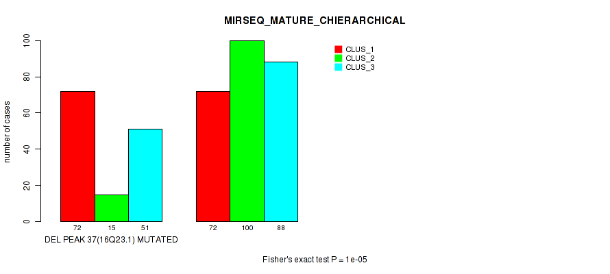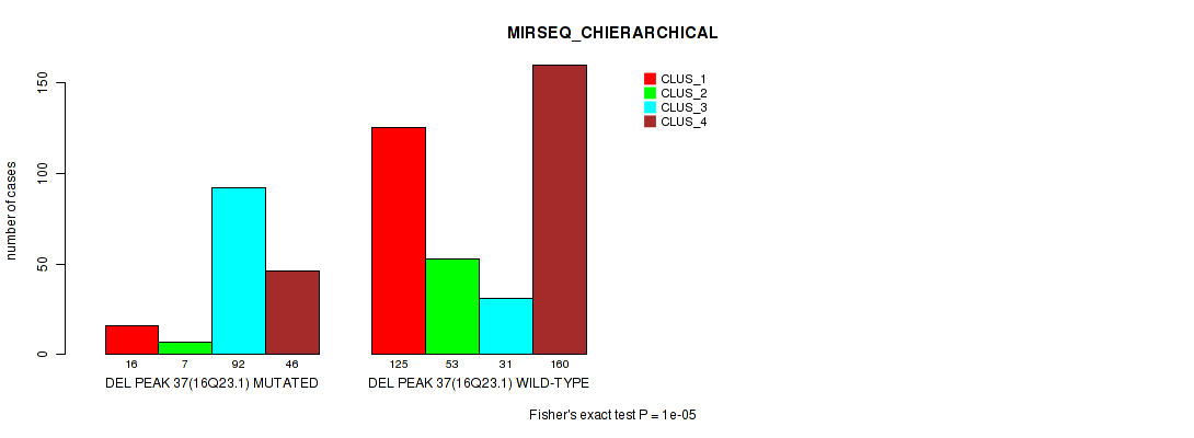 del_16q23.1 cnv correlated to 'MRNA_CHIERARCHICAL', 'CN_CNMF', 'METHLYATION_CNMF', 'MRNASEQ_CNMF', 'MRNASEQ_CHIERARCHICAL', 'MIRSEQ_CNMF', 'MIRSEQ_CHIERARCHICAL', 'MIRSEQ_MATURE_CNMF', and 'MIRSEQ_MATURE_CHIERARCHICAL'.