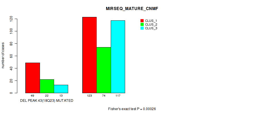 del_18q23 cnv correlated to 'CN_CNMF', 'METHLYATION_CNMF', 'MRNASEQ_CNMF', 'MRNASEQ_CHIERARCHICAL', 'MIRSEQ_CNMF', 'MIRSEQ_CHIERARCHICAL', 'MIRSEQ_MATURE_CNMF', and 'MIRSEQ_MATURE_CHIERARCHICAL'.