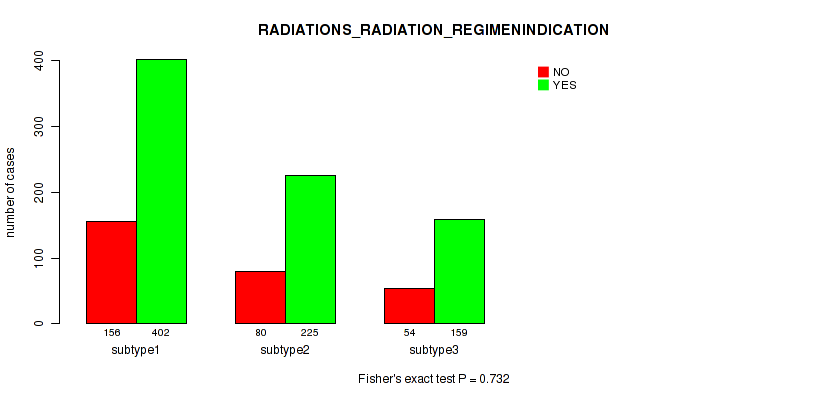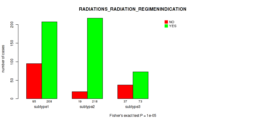 Figure S141. Get High-res Image Clustering Approach #12: 'MIRseq Mature cHierClus subtypes' versus Clinical Feature #9: 'RADIATIONS_RADIATION_REGIMENINDICATION'