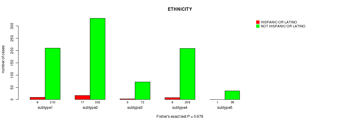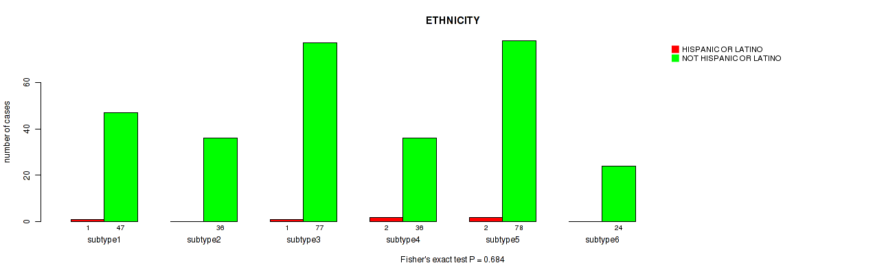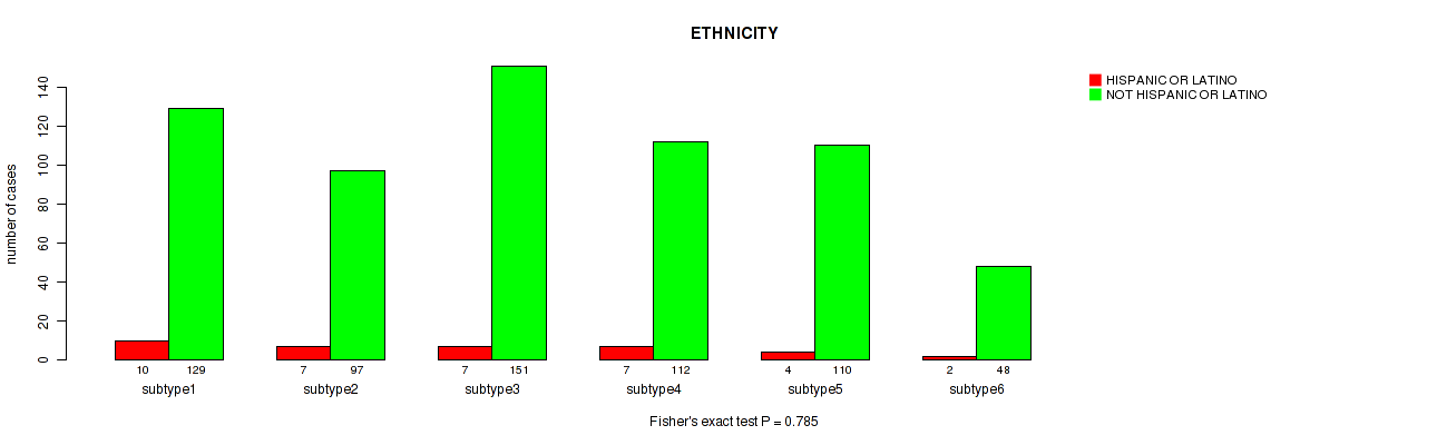 Table S143. Clustering Approach #11: 'MIRseq Mature CNMF subtypes' versus Clinical Feature #12: 'ETHNICITY'