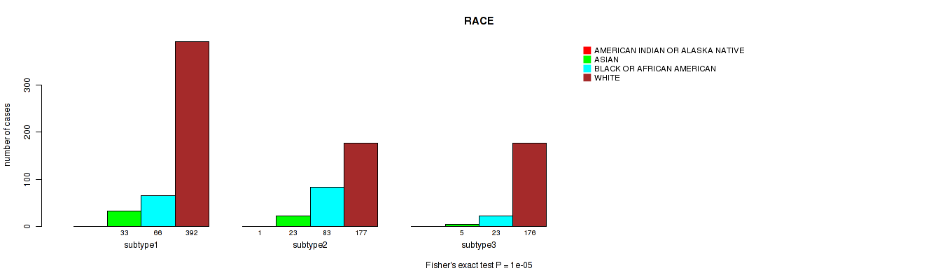 Table S142. Clustering Approach #11: 'MIRseq Mature CNMF subtypes' versus Clinical Feature #11: 'RACE'