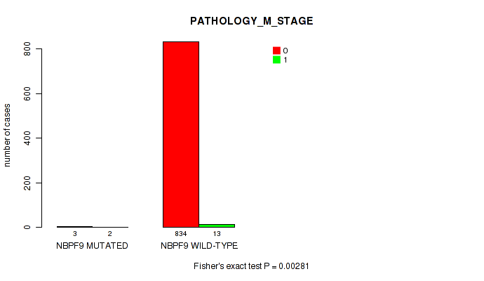 NBPF9 mutation correlated to 'PATHOLOGY_M_STAGE'.