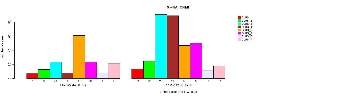 PIK3CA mutation correlated to 'MRNA_CNMF', 'MRNA_CHIERARCHICAL', 'CN_CNMF', 'METHLYATION_CNMF', 'RPPA_CNMF', 'RPPA_CHIERARCHICAL', 'MRNASEQ_CNMF', 'MRNASEQ_CHIERARCHICAL', 'MIRSEQ_CNMF', 'MIRSEQ_CHIERARCHICAL', 'MIRSEQ_MATURE_CNMF', and 'MIRSEQ_MATURE_CHIERARCHICAL'.