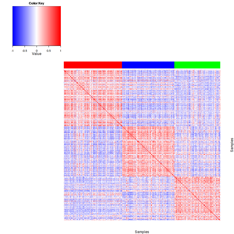Figure 3. Get High-res Image The consensus matrix after clustering shows 3 clusters with limited overlap between clusters.