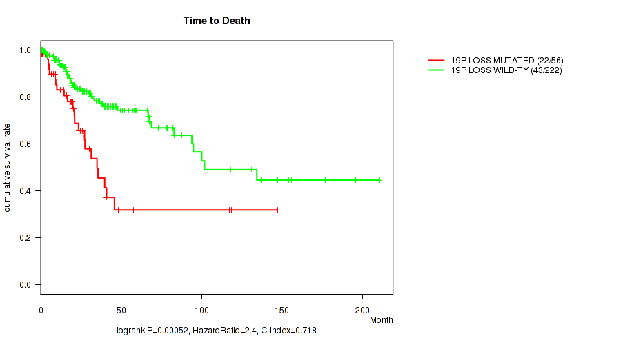 Figure S15. Get High-res Image Gene #75: '19p loss' versus Clinical Feature #1: 'Time to Death'