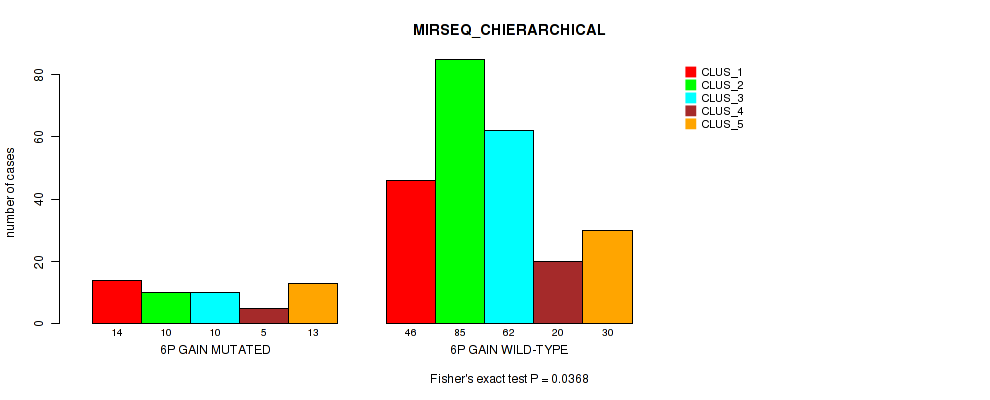 6p gain cnv correlated to 'METHLYATION_CNMF', 'RPPA_CHIERARCHICAL', 'MRNASEQ_CNMF', and 'MIRSEQ_CHIERARCHICAL'.