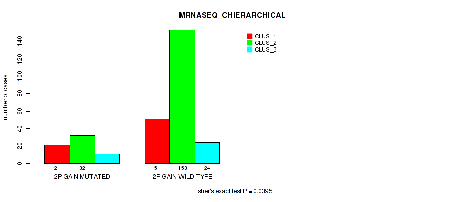2p gain cnv correlated to 'CN_CNMF', 'METHLYATION_CNMF', 'MRNASEQ_CNMF', 'MRNASEQ_CHIERARCHICAL', and 'MIRSEQ_CHIERARCHICAL'.