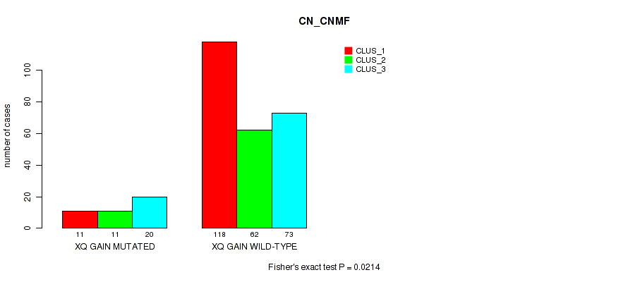 xq gain cnv correlated to 'CN_CNMF' and 'METHLYATION_CNMF'.