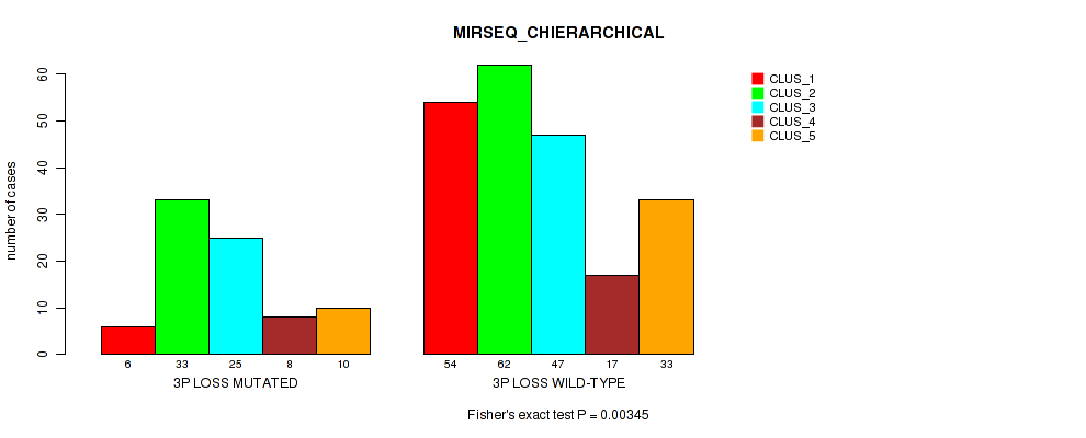 3p loss cnv correlated to 'METHLYATION_CNMF', 'MRNASEQ_CNMF', 'MRNASEQ_CHIERARCHICAL', 'MIRSEQ_CNMF', 'MIRSEQ_CHIERARCHICAL', 'MIRSEQ_MATURE_CNMF', and 'MIRSEQ_MATURE_CHIERARCHICAL'.