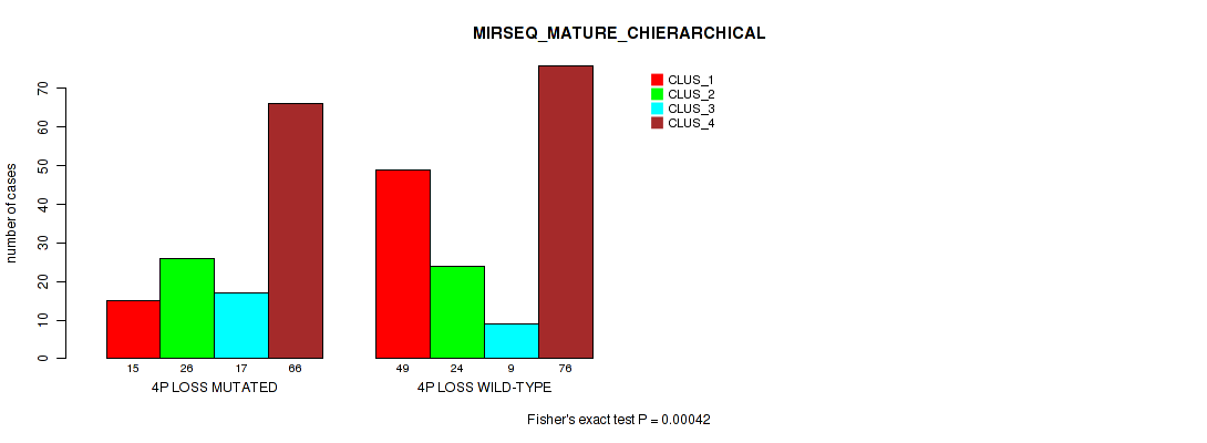 4p loss cnv correlated to 'CN_CNMF', 'MRNASEQ_CNMF', 'MRNASEQ_CHIERARCHICAL', 'MIRSEQ_CHIERARCHICAL', and 'MIRSEQ_MATURE_CHIERARCHICAL'.