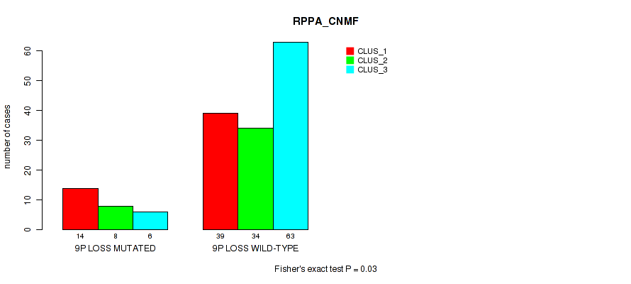 9p loss cnv correlated to 'CN_CNMF' and 'RPPA_CNMF'.