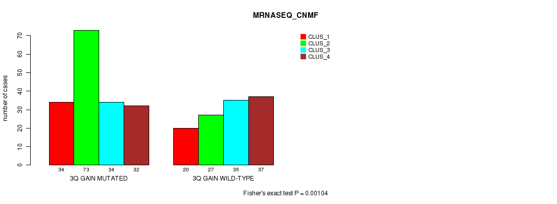 3q gain cnv correlated to 'CN_CNMF', 'METHLYATION_CNMF', 'MRNASEQ_CNMF', 'MRNASEQ_CHIERARCHICAL', 'MIRSEQ_CHIERARCHICAL', 'MIRSEQ_MATURE_CNMF', and 'MIRSEQ_MATURE_CHIERARCHICAL'.