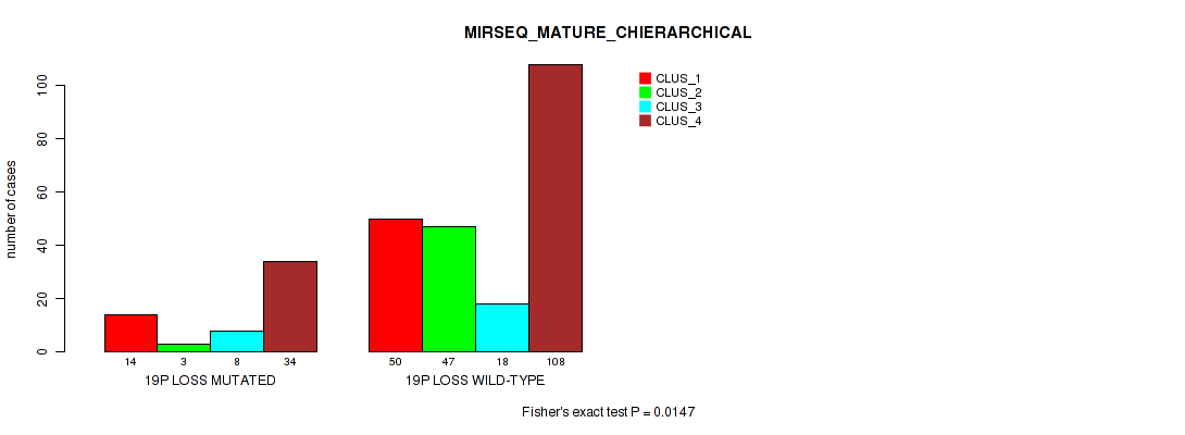 Table S197. Gene #75: '19p loss' versus Molecular Subtype #10: 'MIRSEQ_MATURE_CHIERARCHICAL'