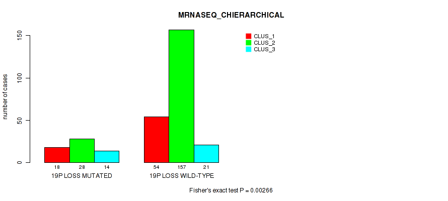 Figure S196. Get High-res Image Gene #75: '19p loss' versus Molecular Subtype #8: 'MIRSEQ_CHIERARCHICAL'