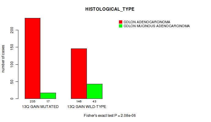 Figure S194. Get High-res Image Gene #78: '21q loss' versus Clinical Feature #8: 'HISTOLOGICAL_TYPE'