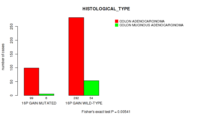 16p gain cnv correlated to 'NEOPLASM_DISEASESTAGE', 'PATHOLOGY_N_STAGE', 'HISTOLOGICAL_TYPE', and 'NUMBER_OF_LYMPH_NODES'.
