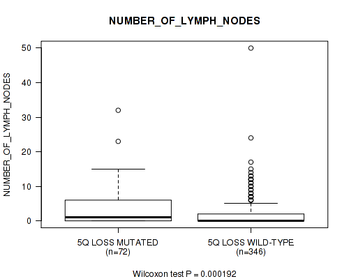 5p gain cnv correlated to 'PATHOLOGY_N_STAGE' and 'NUMBER_OF_LYMPH_NODES'.