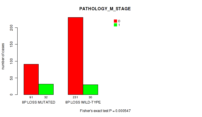 8p loss cnv correlated to 'NEOPLASM_DISEASESTAGE', 'PATHOLOGY_N_STAGE', 'PATHOLOGY_M_STAGE', 'HISTOLOGICAL_TYPE', and 'NUMBER_OF_LYMPH_NODES'.