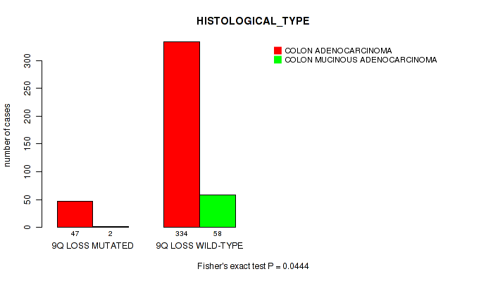 9p loss cnv correlated to 'HISTOLOGICAL_TYPE'.
