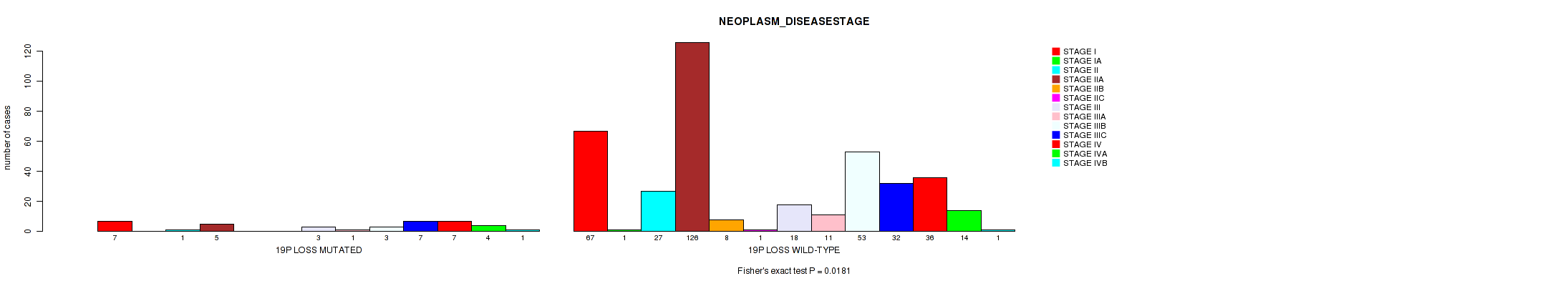19p loss cnv correlated to 'NEOPLASM_DISEASESTAGE', 'PATHOLOGY_N_STAGE', 'PATHOLOGY_M_STAGE', and 'NUMBER_OF_LYMPH_NODES'.