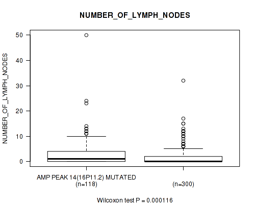 amp_16p11.2 cnv correlated to 'NEOPLASM_DISEASESTAGE', 'PATHOLOGY_N_STAGE', 'HISTOLOGICAL_TYPE', and 'NUMBER_OF_LYMPH_NODES'.