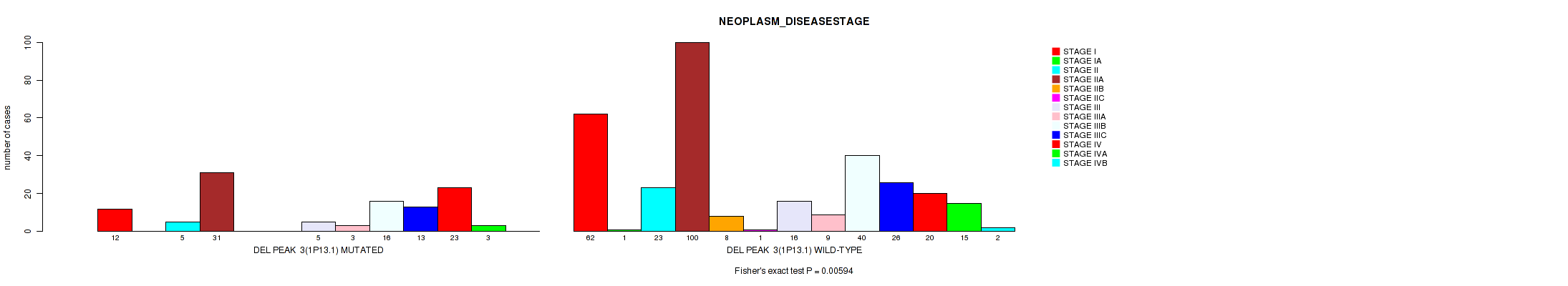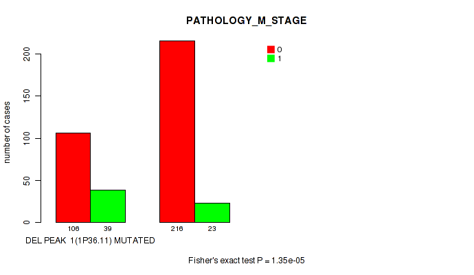 del_1p13.1 cnv correlated to 'NEOPLASM_DISEASESTAGE', 'PATHOLOGY_N_STAGE', 'PATHOLOGY_M_STAGE', and 'NUMBER_OF_LYMPH_NODES'.