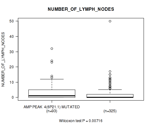 amp_6p21.1 cnv correlated to 'NEOPLASM_DISEASESTAGE', 'PATHOLOGY_N_STAGE', 'RADIATIONS_RADIATION_REGIMENINDICATION', and 'NUMBER_OF_LYMPH_NODES'.