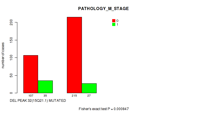 Figure S267. Get High-res Image Gene #69: 'del_22q13.32' versus Clinical Feature #6: 'PATHOLOGY_M_STAGE'