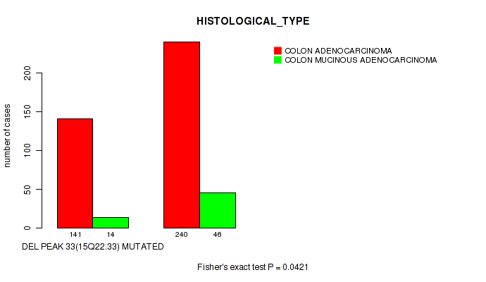Figure S255. Get High-res Image Gene #65: 'del_18q21.2' versus Clinical Feature #8: 'HISTOLOGICAL_TYPE'