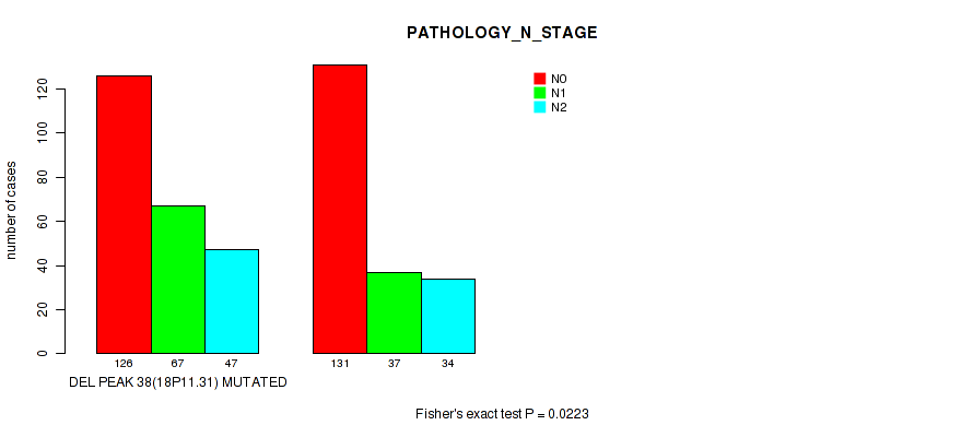 Figure S252. Get High-res Image Gene #65: 'del_18q21.2' versus Clinical Feature #5: 'PATHOLOGY_N_STAGE'