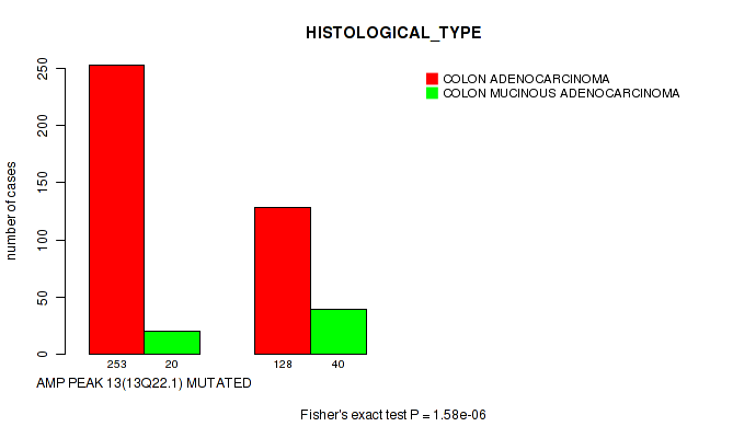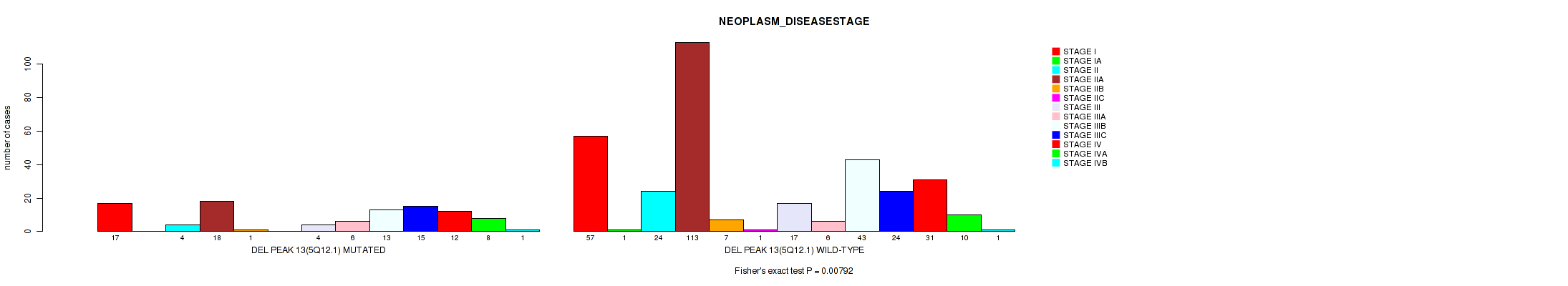 amp_13q12.13 cnv correlated to 'NEOPLASM_DISEASESTAGE', 'PATHOLOGY_N_STAGE', 'PATHOLOGY_M_STAGE', 'HISTOLOGICAL_TYPE', 'COMPLETENESS_OF_RESECTION', and 'NUMBER_OF_LYMPH_NODES'.