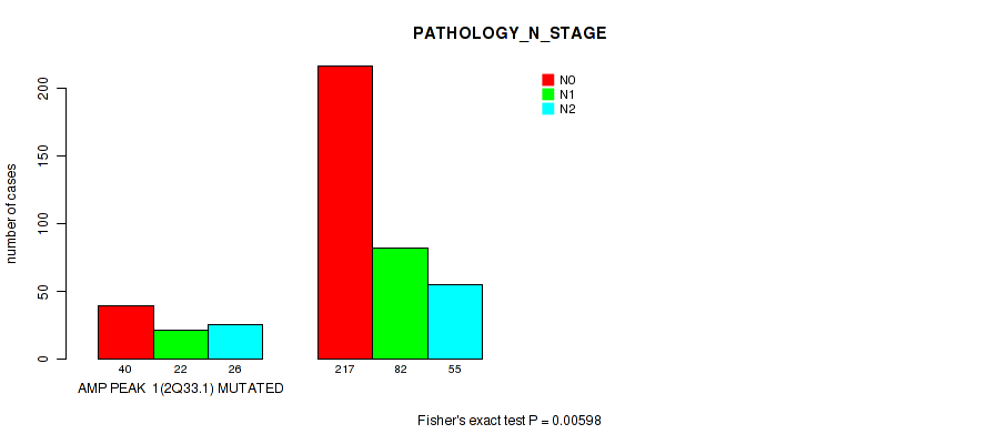 amp_2q33.1 cnv correlated to 'Time to Death', 'PATHOLOGY_N_STAGE', and 'NUMBER_OF_LYMPH_NODES'.