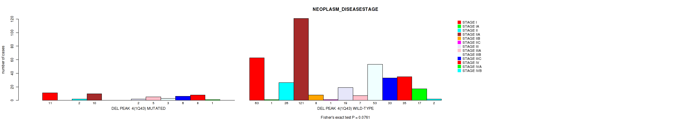 del_1q43 cnv correlated to 'NEOPLASM_DISEASESTAGE'.