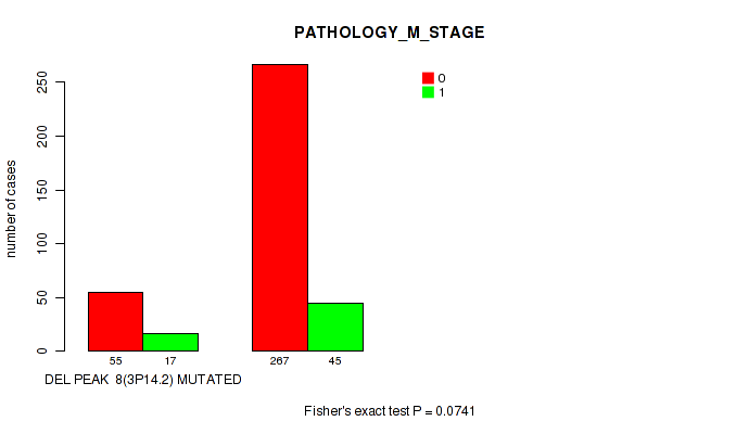 del_3p14.2 cnv correlated to 'PATHOLOGY_N_STAGE', 'PATHOLOGY_M_STAGE', and 'NUMBER_OF_LYMPH_NODES'.