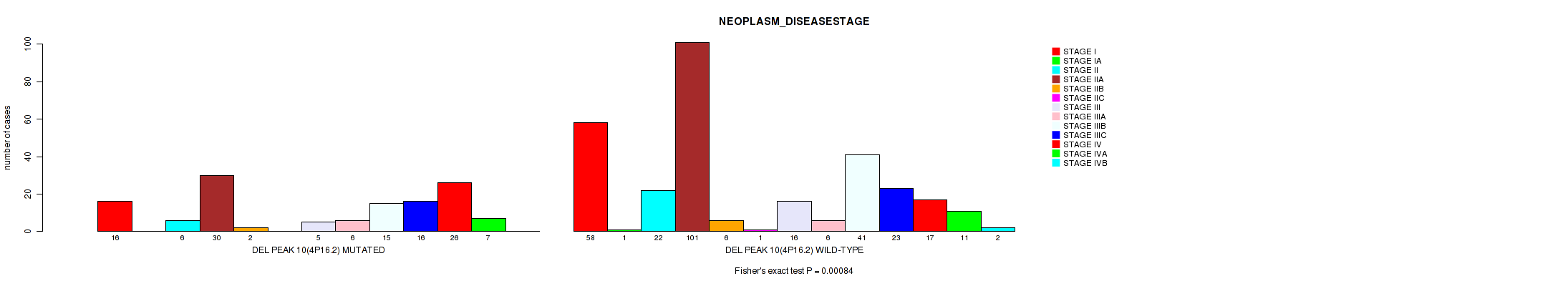 Figure S257. Get High-res Image Gene #66: 'del_19p13.3' versus Clinical Feature #3: 'NEOPLASM_DISEASESTAGE'