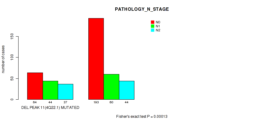 Table S262. Gene #68: 'del_21q11.2' versus Clinical Feature #5: 'PATHOLOGY_N_STAGE'