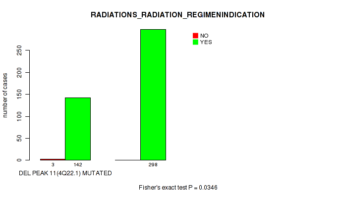 del_4q22.1 cnv correlated to 'Time to Death', 'NEOPLASM_DISEASESTAGE', 'PATHOLOGY_N_STAGE', 'PATHOLOGY_M_STAGE', 'HISTOLOGICAL_TYPE', 'RADIATIONS_RADIATION_REGIMENINDICATION', and 'NUMBER_OF_LYMPH_NODES'.
