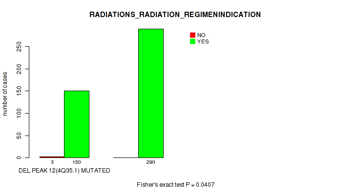 del_4q35.1 cnv correlated to 'NEOPLASM_DISEASESTAGE', 'PATHOLOGY_N_STAGE', 'PATHOLOGY_M_STAGE', 'RADIATIONS_RADIATION_REGIMENINDICATION', and 'NUMBER_OF_LYMPH_NODES'.