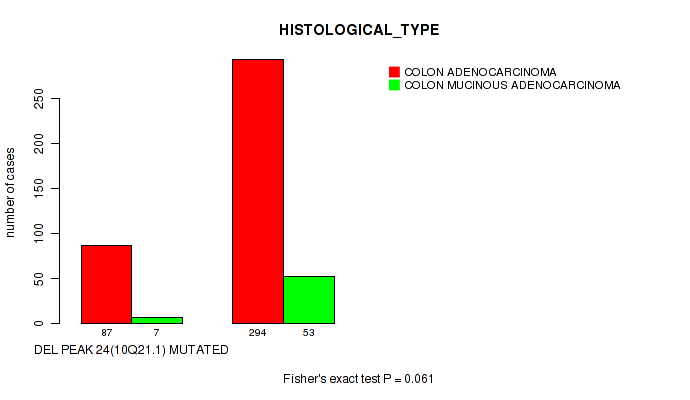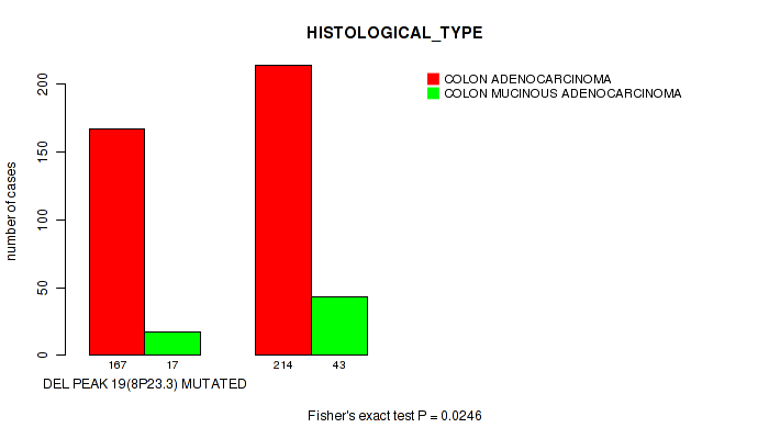 Figure S261. Get High-res Image Gene #67: 'del_20p12.1' versus Clinical Feature #8: 'HISTOLOGICAL_TYPE'
