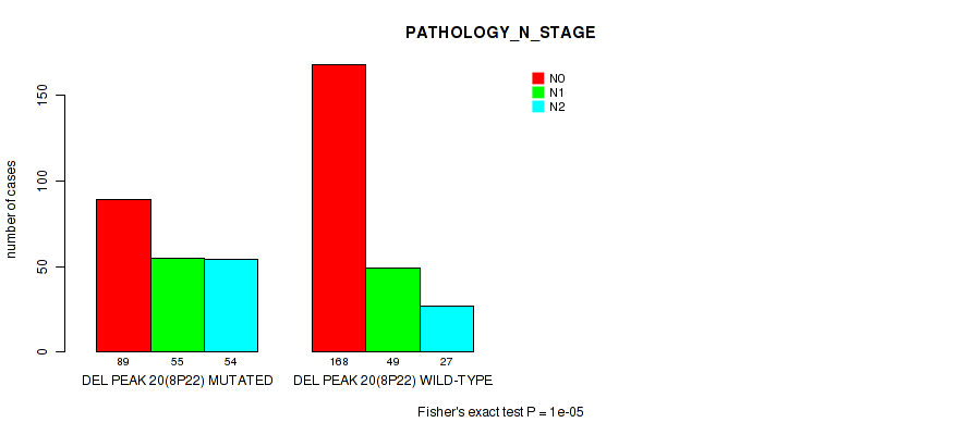 del_8p22 cnv correlated to 'YEARS_TO_BIRTH', 'NEOPLASM_DISEASESTAGE', 'PATHOLOGY_T_STAGE', 'PATHOLOGY_N_STAGE', 'PATHOLOGY_M_STAGE', 'GENDER', 'HISTOLOGICAL_TYPE', 'COMPLETENESS_OF_RESECTION', and 'NUMBER_OF_LYMPH_NODES'.